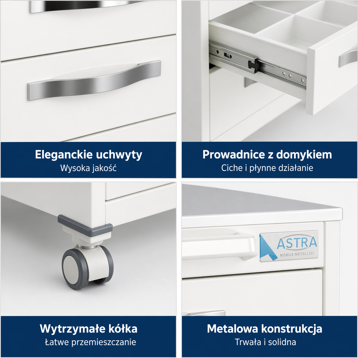 Asystor jezdny 4-szufladowy ASTRA - metalowy, z organizerem gratis.