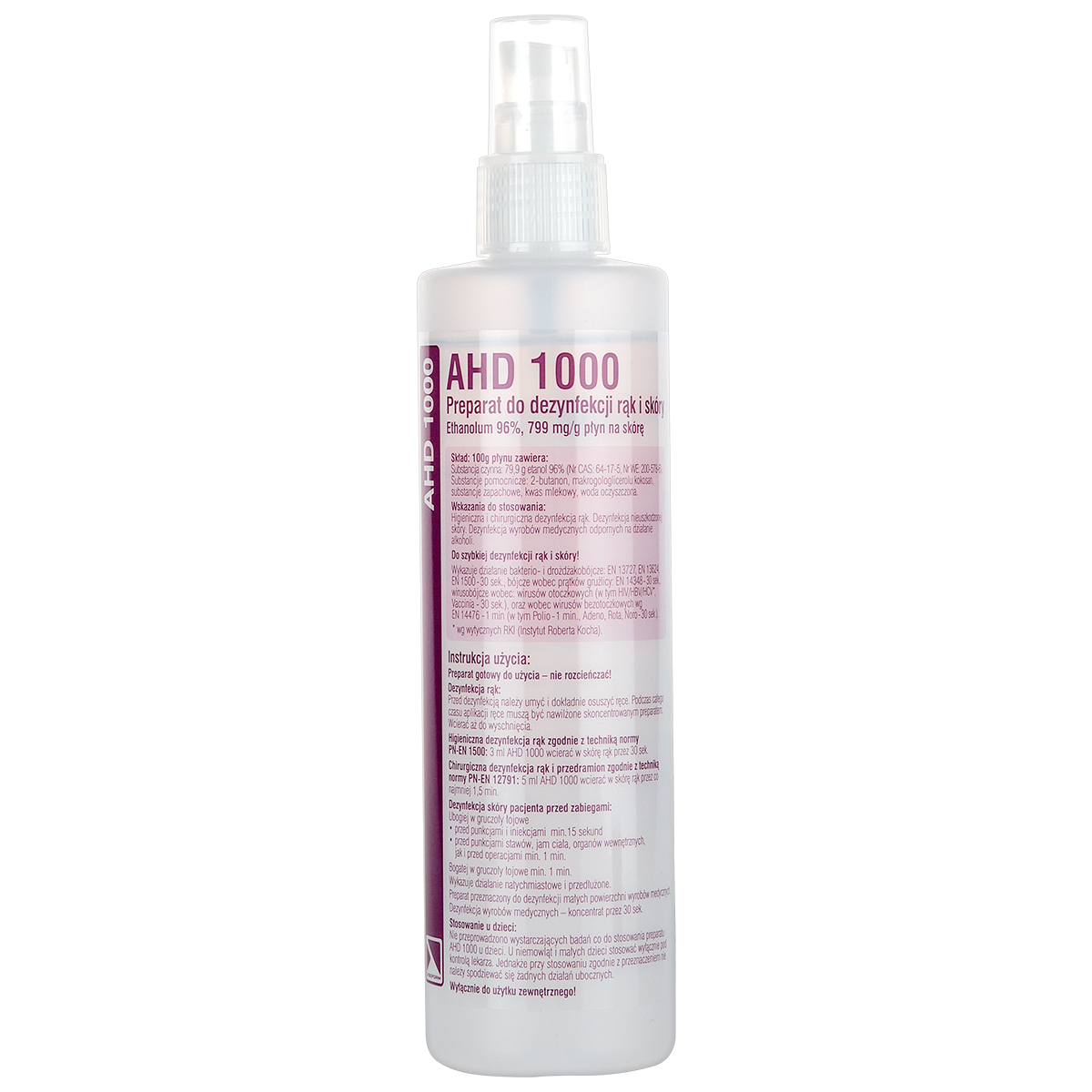 AHD 1000 to preparat na bazie alkoholu polecany do dezynfekcji rąk i skóry. Nadaje się do stosowania przed zabiegami jako forma zapobiegania zakażeniom pacjentów i personelu gabinetu stomatologicznego. Polecany zwłaszcza dla osób, które zmuszone są do częstego mycia i dezynfekcji rąk, ponieważ dodatek pochodny kwasu mlekowego oraz glicerolu odpowiada za odpowiednie nawilżenie skóry oraz zapobiega jej wysuszaniu. Po rozprowadzeniu preparatu na dłoniach zamienia się w wodną substancję, która bardzo łatwo daje się rozprowadzić i nie pozostawia uczucia lepkości, produkt jednocześnie bardzo dobrze odtłuszcza skórę. AHD 1000 polecany jest alergikom oraz osobom o wrażliwej i delikatnej skórze, ponieważ nie zawiera żadnych substancji mogących ją obciążyć i podrażnić.