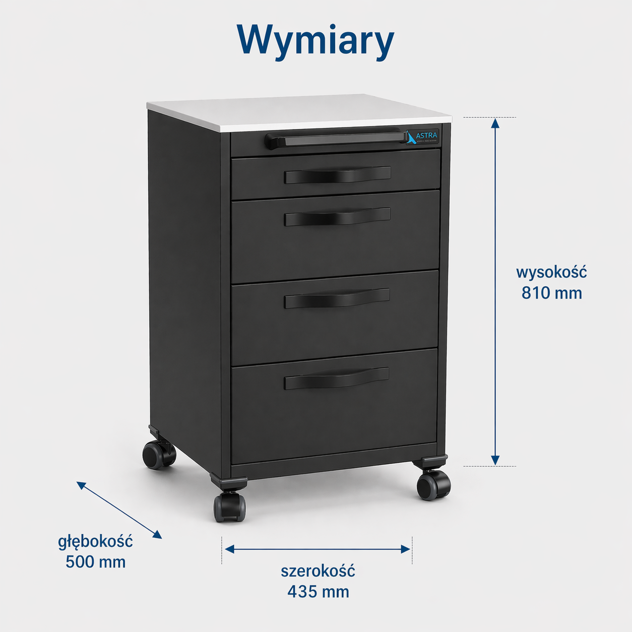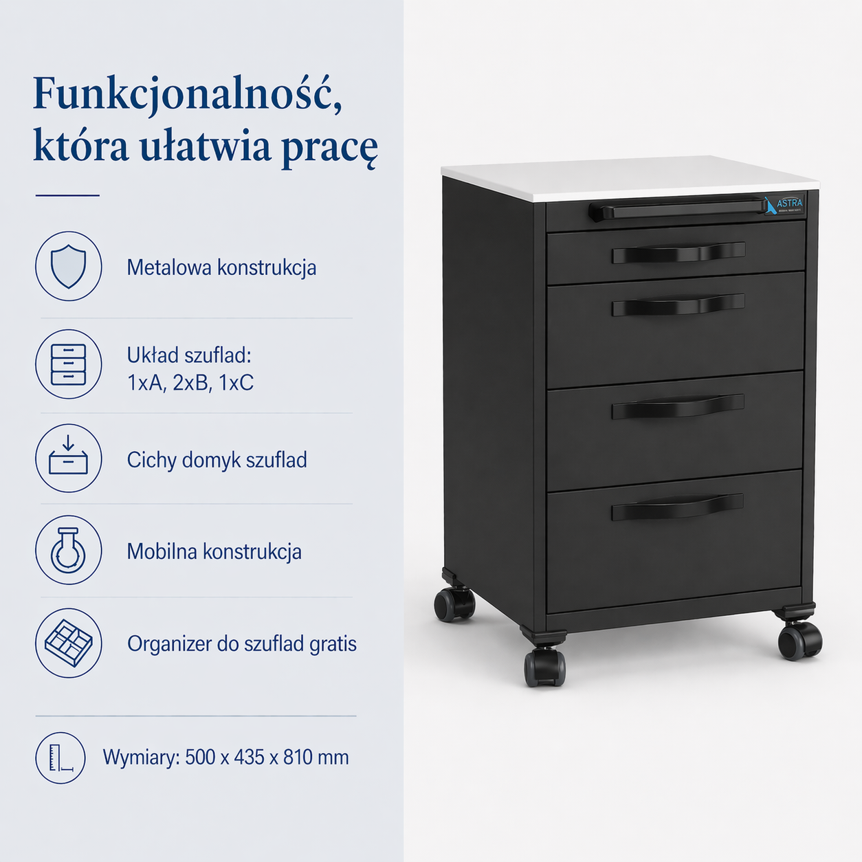 Asystor jezdny 4-szufladowy ASTRA - metalowy, z organizerem gratis.