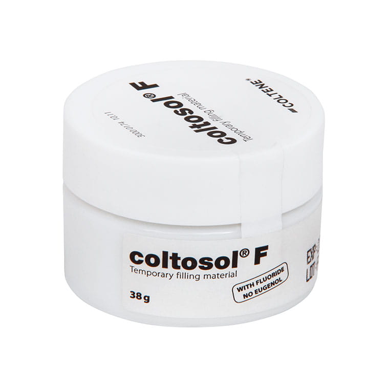 Coltosol F to tymczasowy materiał wypełnieniowy z fluorem. Jest to biały materiał, wiążący się chemicznie, na bazie tlenku cynku i siarczanu cynku.
