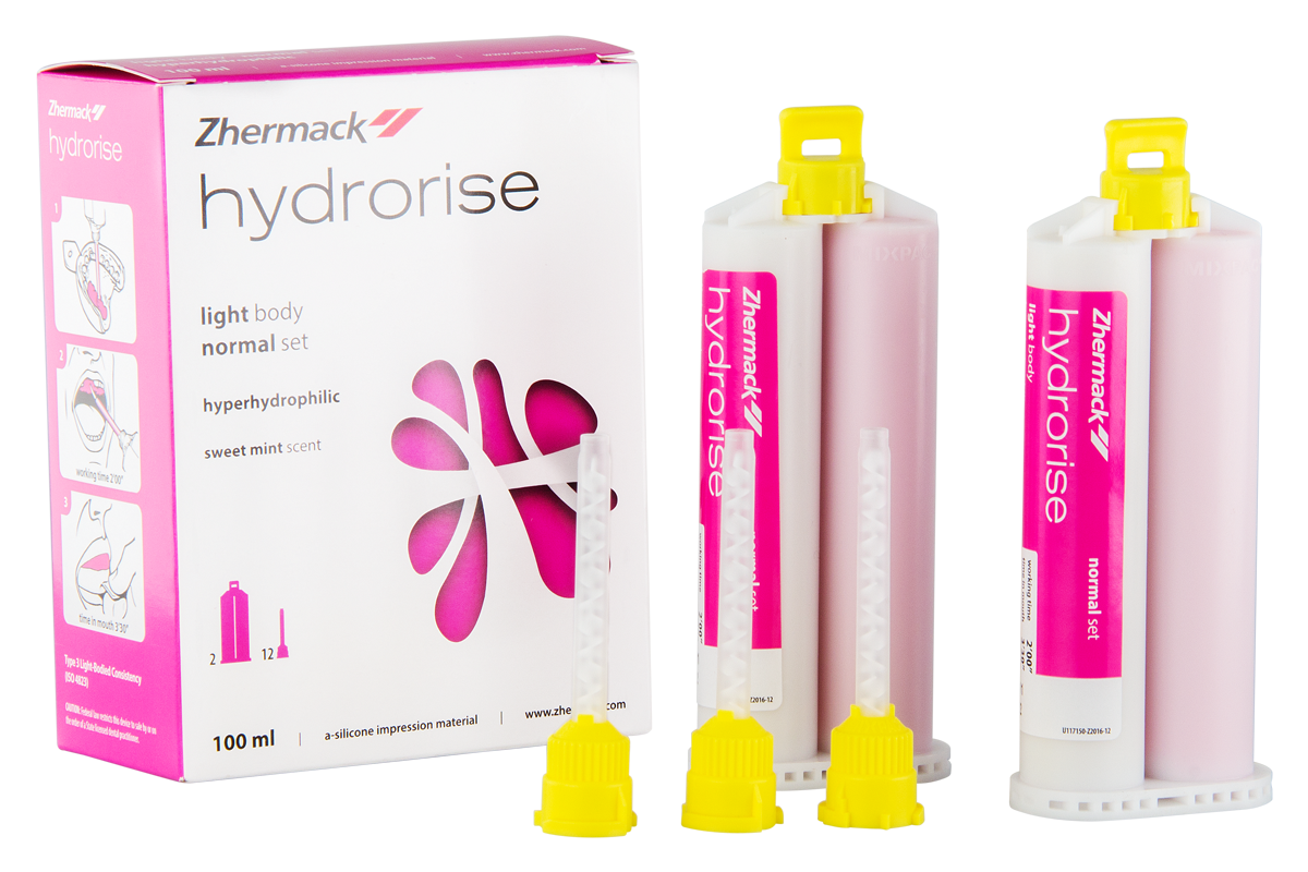 Hydrorise, to hiperhydrokompatybilny silikon addycyjny, stosowany we wszystkich technikach pobierania wycisków. Dzięki różnym stopniom lepkości, jego zastosowanie jest bardzo szerokie.
