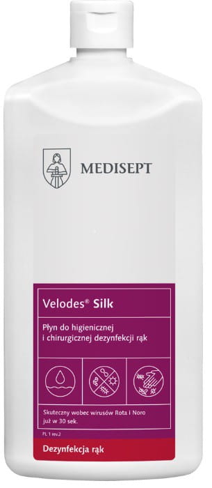 Zastosowanie: Velodes® Silk to alkoholowy, gotowy do użycia produkt przeznaczony do higienicznej i chirurgicznej dezynfekcji rąk w obszarze