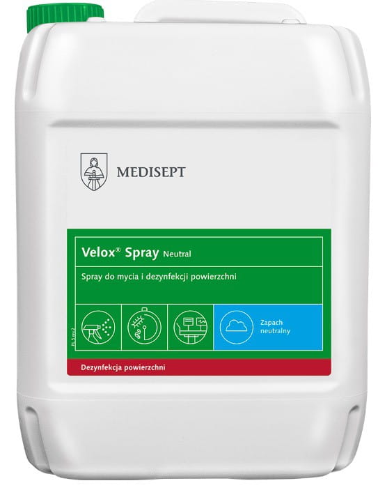 Velox Spray – preparat do szybkiej dezynfekcji małych powierzchni sprzętu medycznego, nadaje się do stosowania na łóżkach i fotelach zabiegowych, aparatury medycznej i operacyjnej, a także sprzętu rehabilitacyjnego. W stomatologii polecany do dezynfekcji końcówek stomatologicznych przed rozpoczęciem procesu sterylizacji, a także do łyżek protetycznych i wycisków silikonowych.